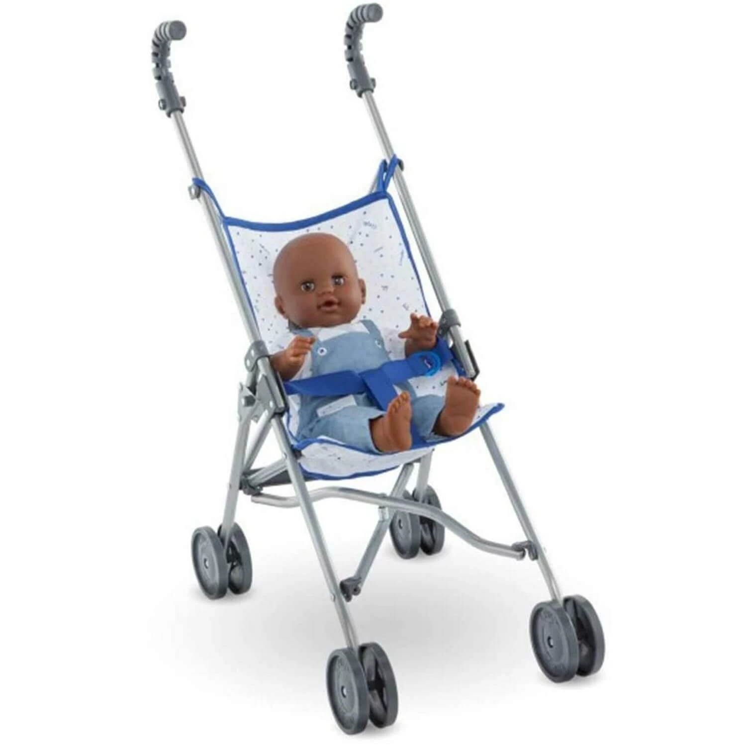 Découvrez la poussette canne bleue pour poupon Corolle 36/42/52 cm.