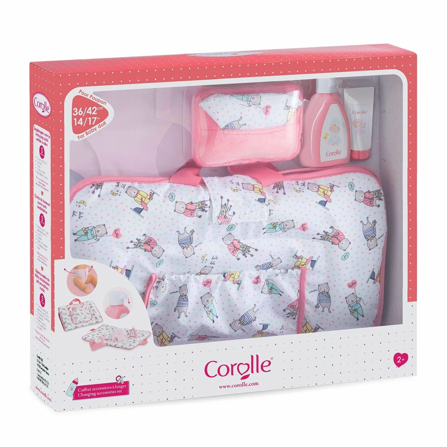 Ce Coffret Accessoires à langer contient 5 accessoires indispensables pour le change des grands poupons :