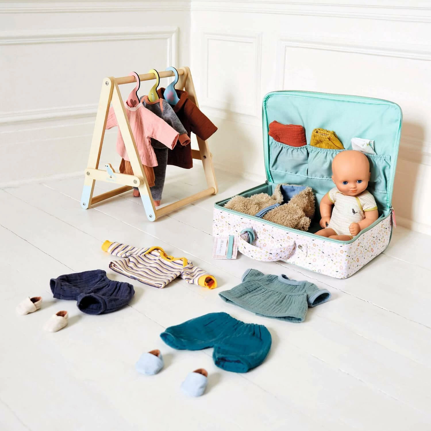 Djeco Accessoire Pour Poupon Poméa 32 Cm : Portant Vêtements, 3 Cintres
