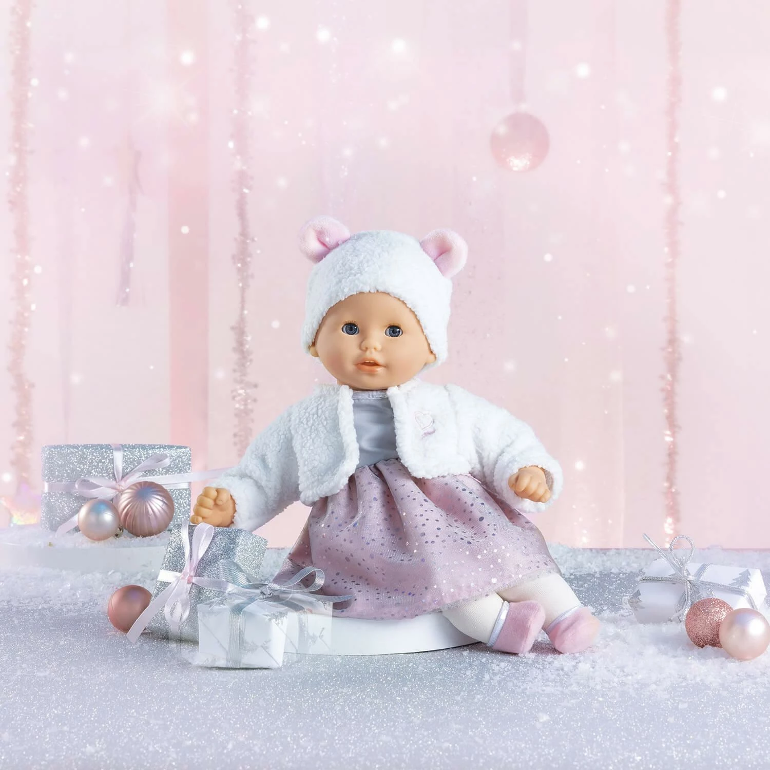 Bébé Calin Marguerite Soir de Fête est un petit poupon de la marque Corolle mesurant 30 cm, la taille parfaitement adaptée aux petits bras et mains de l’enfant pour le manipuler.