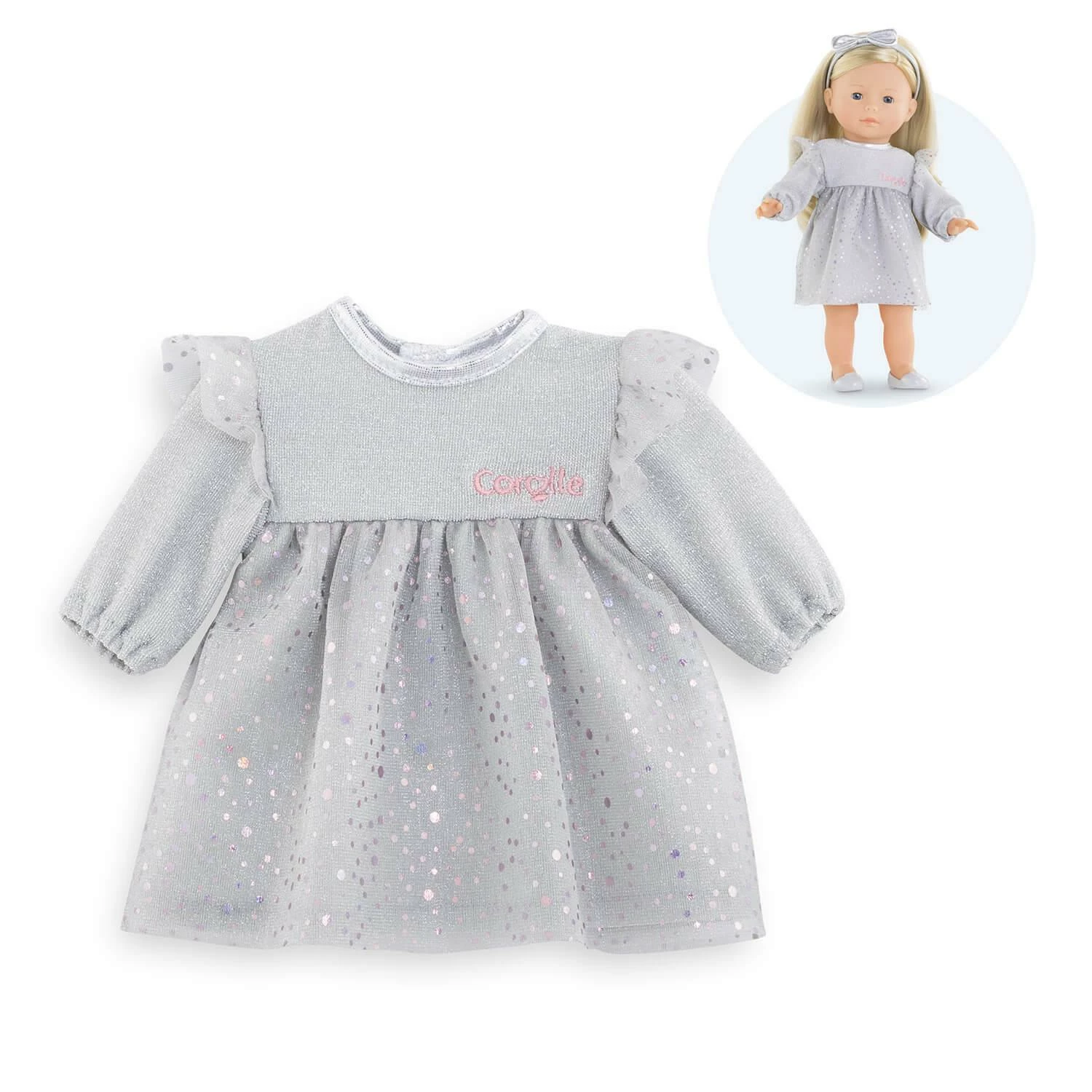 La soirée va bientôt commencer et pour se faire remarquer, la robe Soir de Fête pour poupée ma Corolle est le choix parfait.
